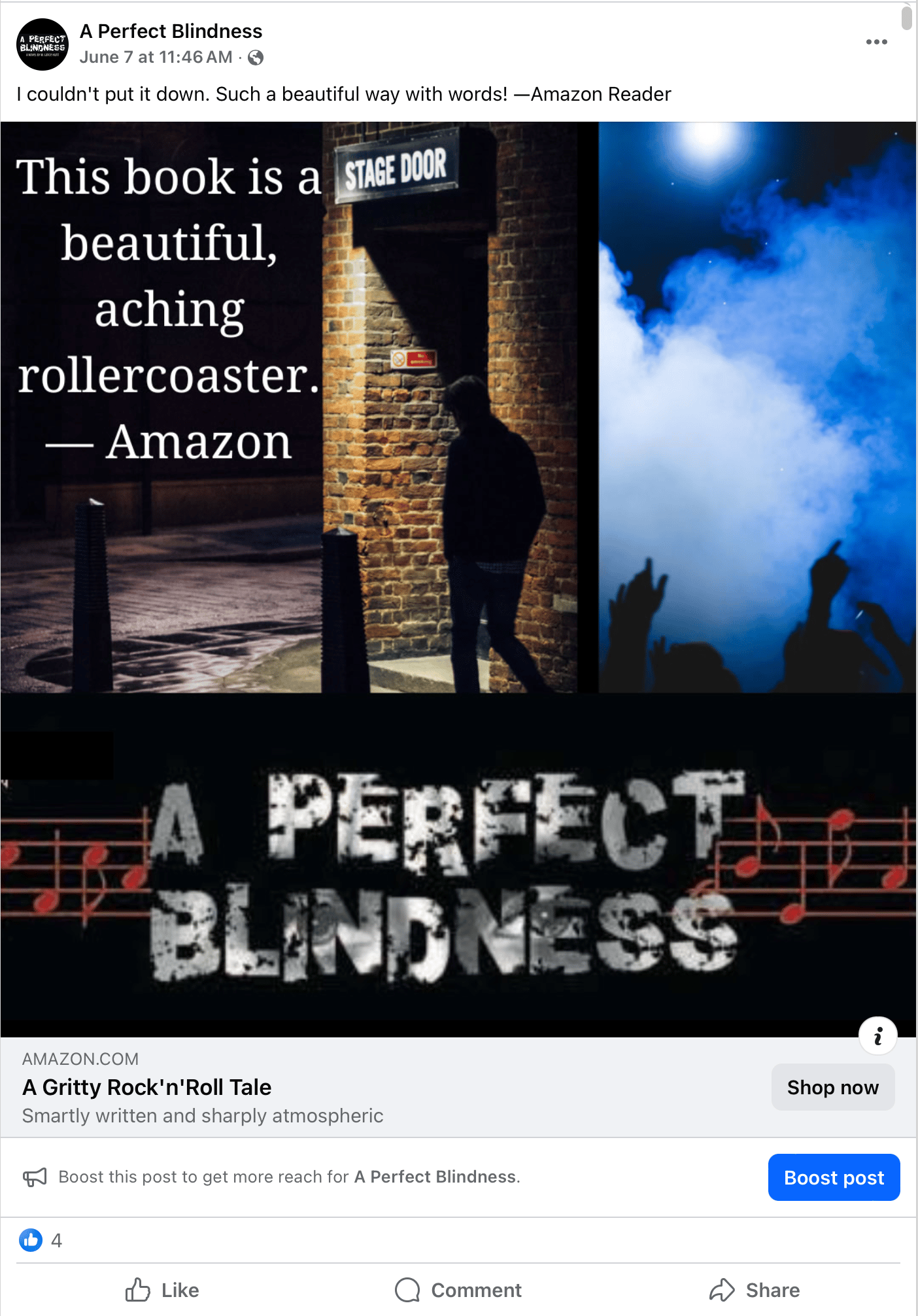Last time, we reported on changes to A Perfect Blindness’s metadata, the A+ material, keywords, and description. If you don’t know what A+ material is, it’s that stuff that appears below a title on Amazon in the “From the Publisher” section. It’s relatively new for indie writers like me, so I gave it a whirl: